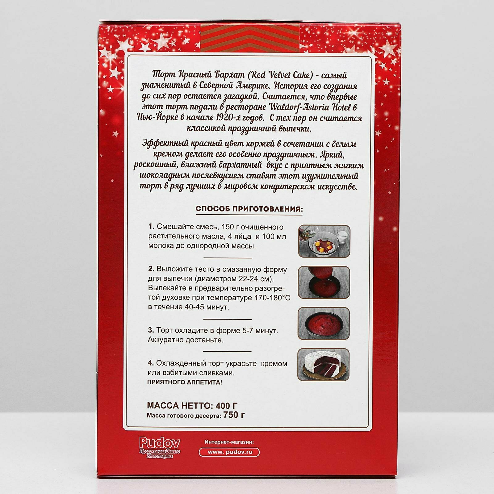 Смесь для выпечки «С.Пудовъ» торт Красный бархат, 400 г 2 пачки информация: