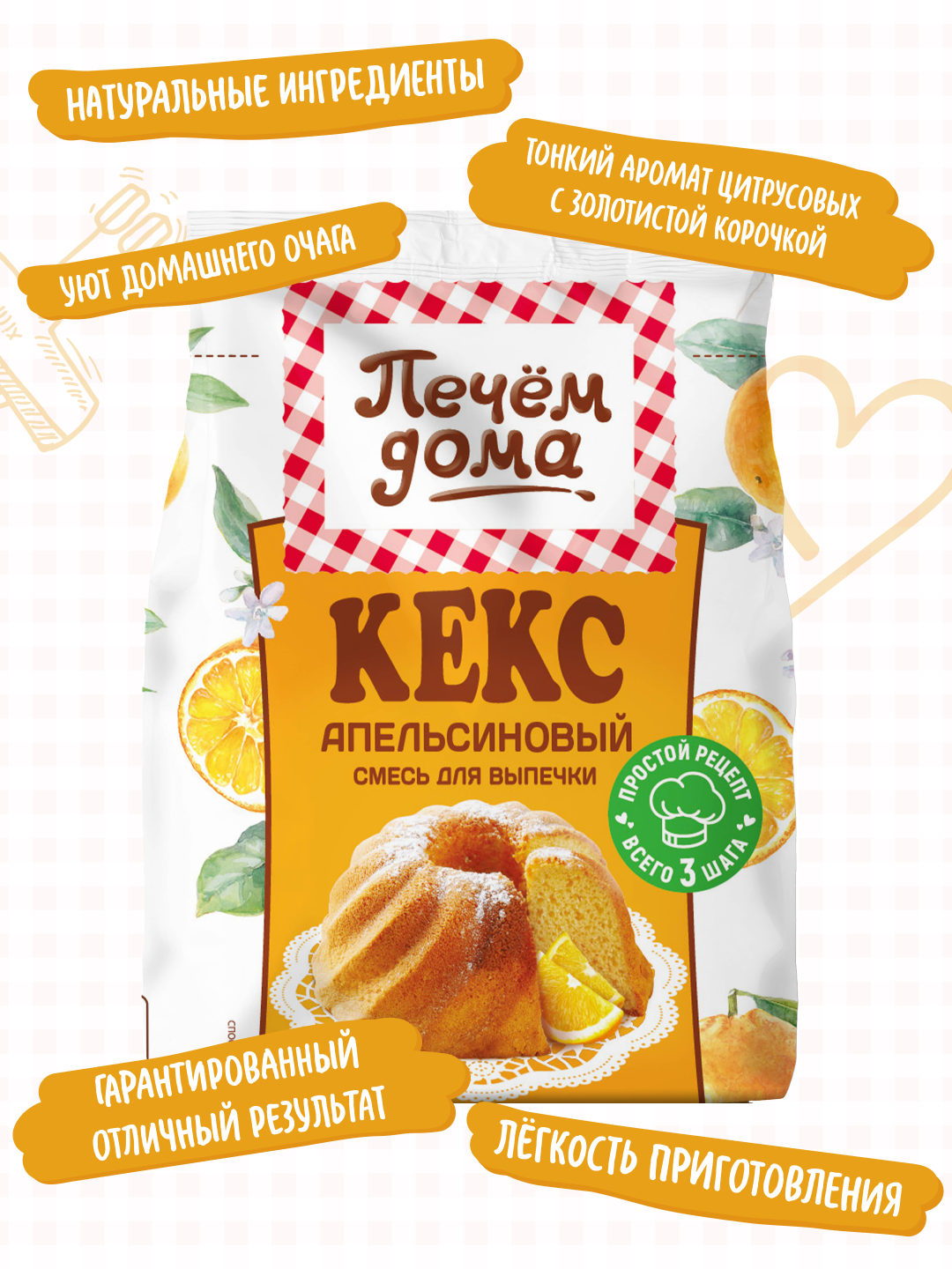 Смесь для выпечки Кекс Печем дома Апельсиновый 300 гр x 8 штук в коробке, Русский Продукт информация: