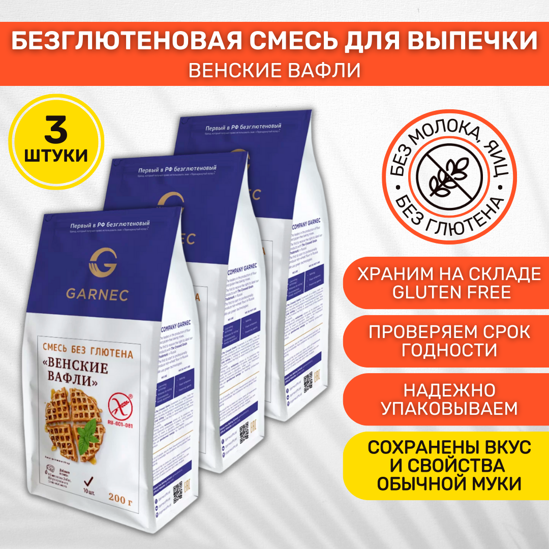 10 цен на Смесь для выпечки без глютена Garnec Гарнец Венские вафли 3 шт по 200г