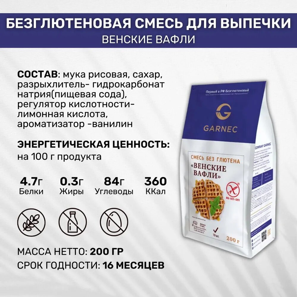 Смесь для выпечки без глютена Garnec Гарнец Венские вафли 3 шт по 200г информация: