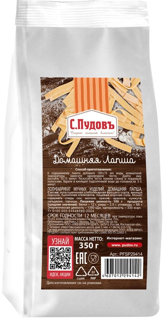 Домашняя лапша С.Пудовъ, 350 г информация:
