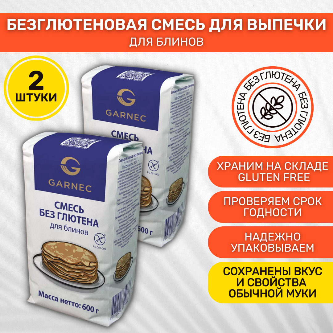 10 цен на Смесь для выпечки без глютена Garnec Гарнец для Блинов 2 шт по 600 г