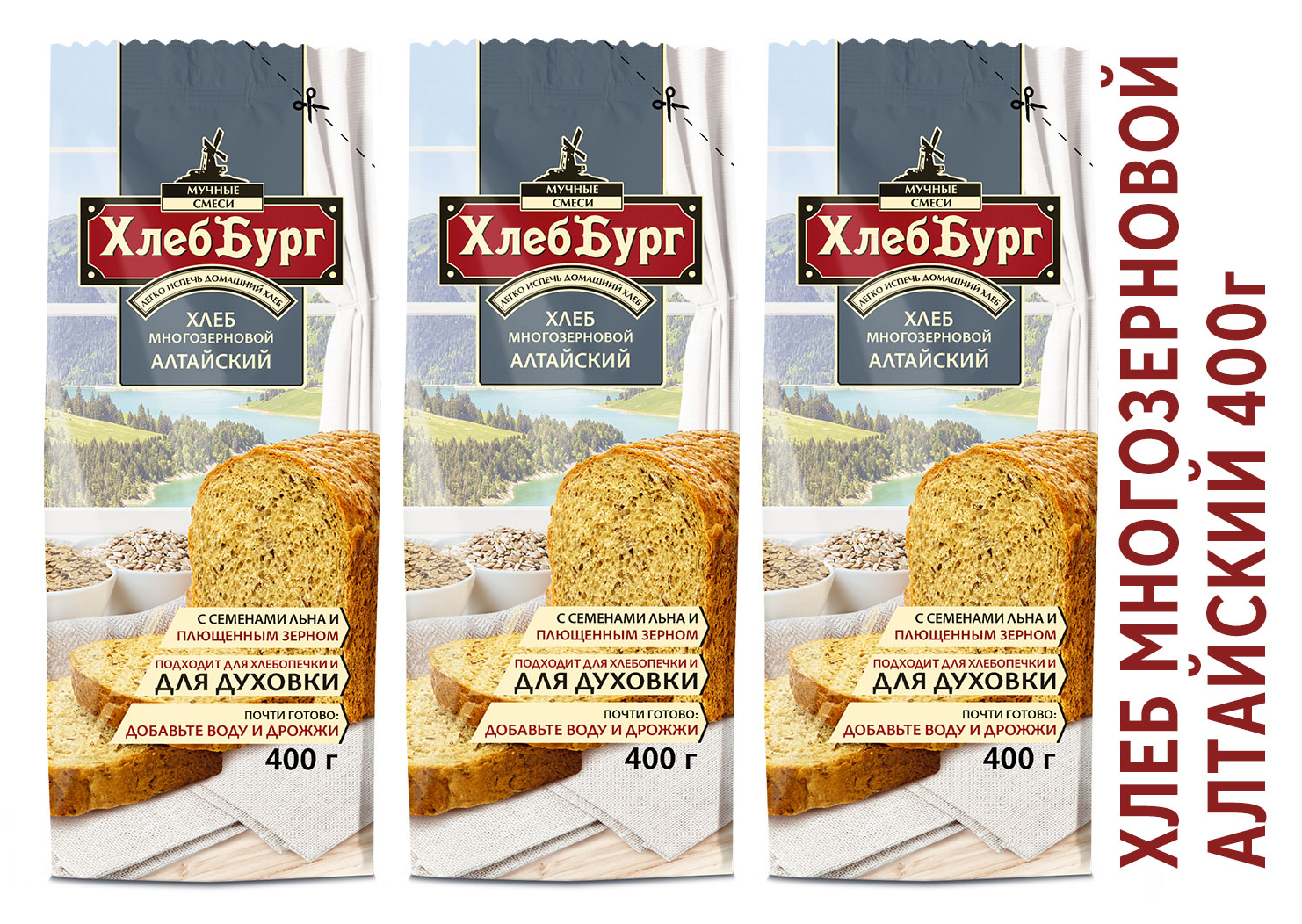 Смесь для выпечки «ХлебБург» хлеб многозерновой алтайский, 400 г 3 пачки информация: