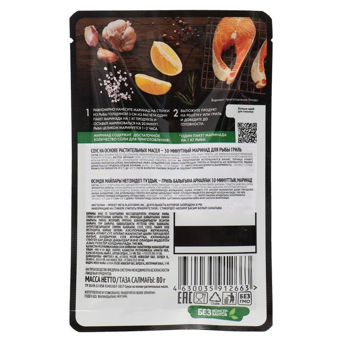 Маринад "Костровок" для рыбы гриль"Жарим на решётке", 80г информация: