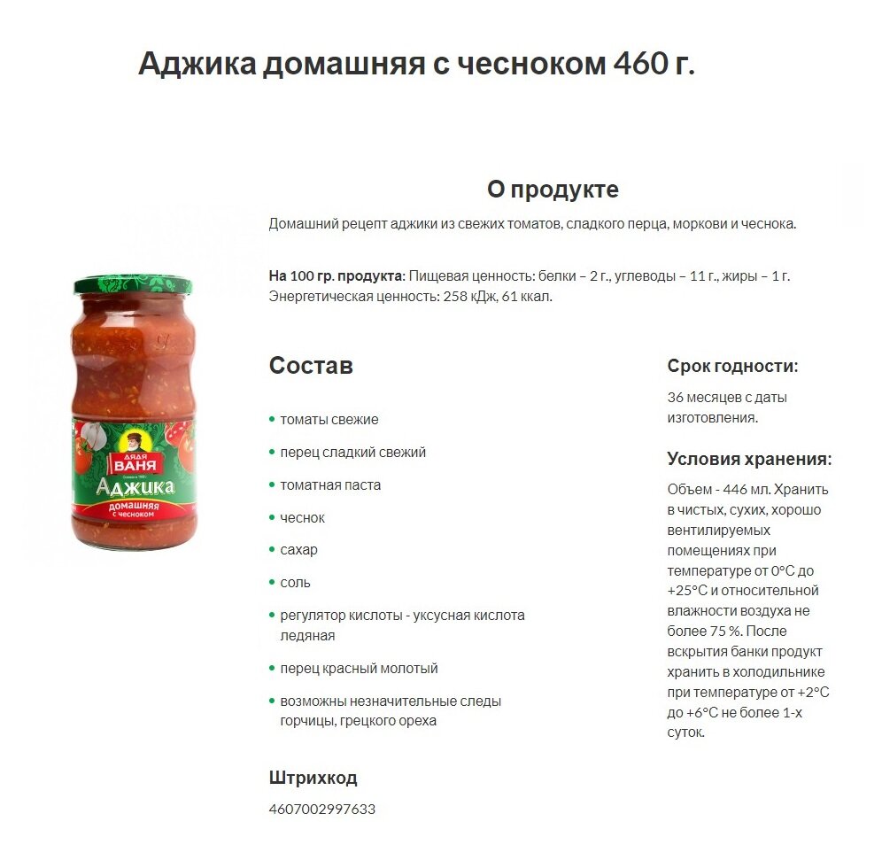 Аджика домашняя с чесноком Дядя Ваня 460 г 8 шт информация: