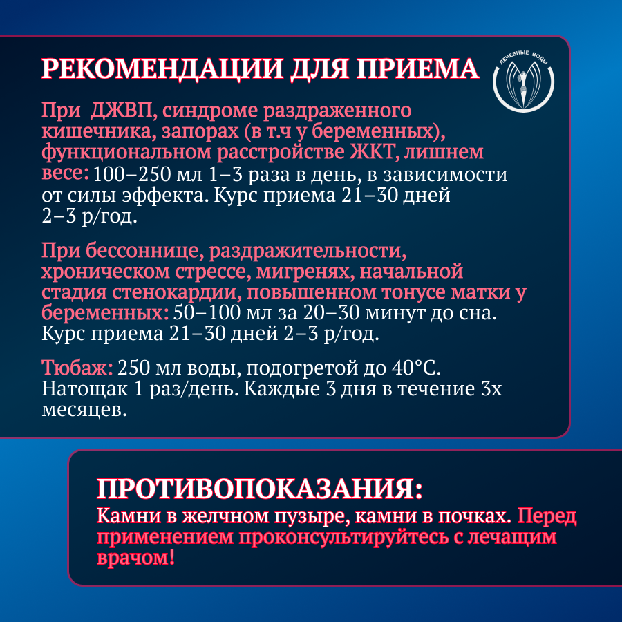 Вид минеральной воды | сульфатно-магниевая |