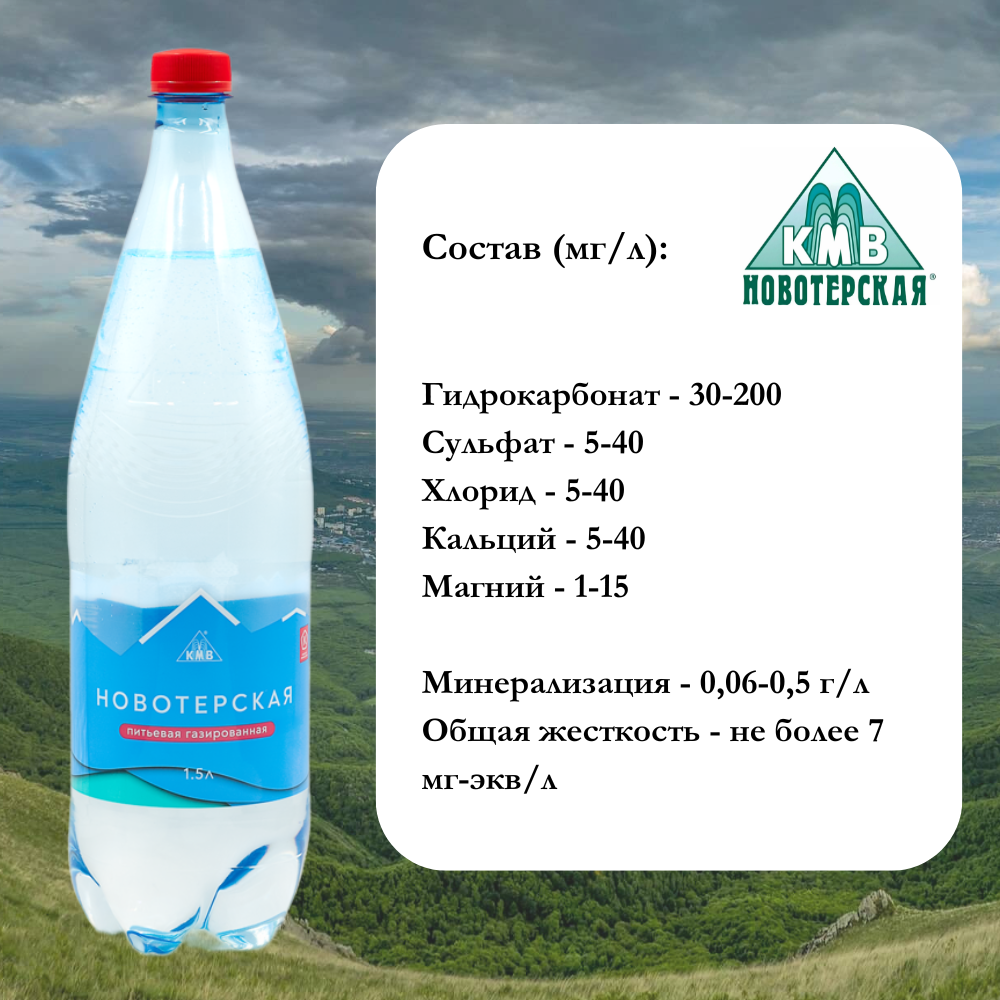 Вода питьевая Новотерская, 1,5 л х 6 шт, газированная, пэт информация: