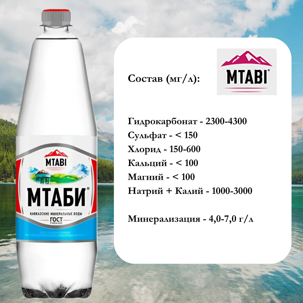 Вода минеральная Мтаби, лечебно-столовая, 1,25 л х 6 шт, газированная, пэт информация: