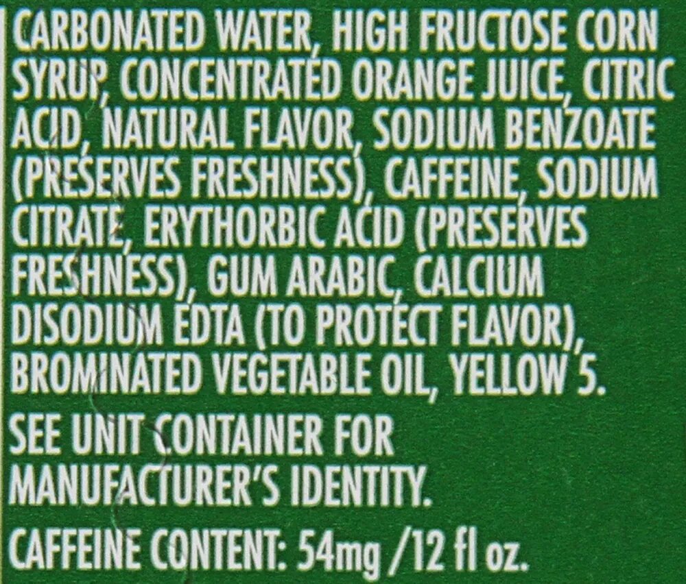 Состав | Газированный безалкогольный напиток со вкусом цитрусовых, газированный ароматизированный напиток: газированная вода, сахар, регуляторы кислотности (E330, E331(III), E300), консервант (E211), кофеин, эмульгатор (E414), разрешенный пищевой краситель (E102) и натуральный ароматизатор содержит кофеин (146ppm) |