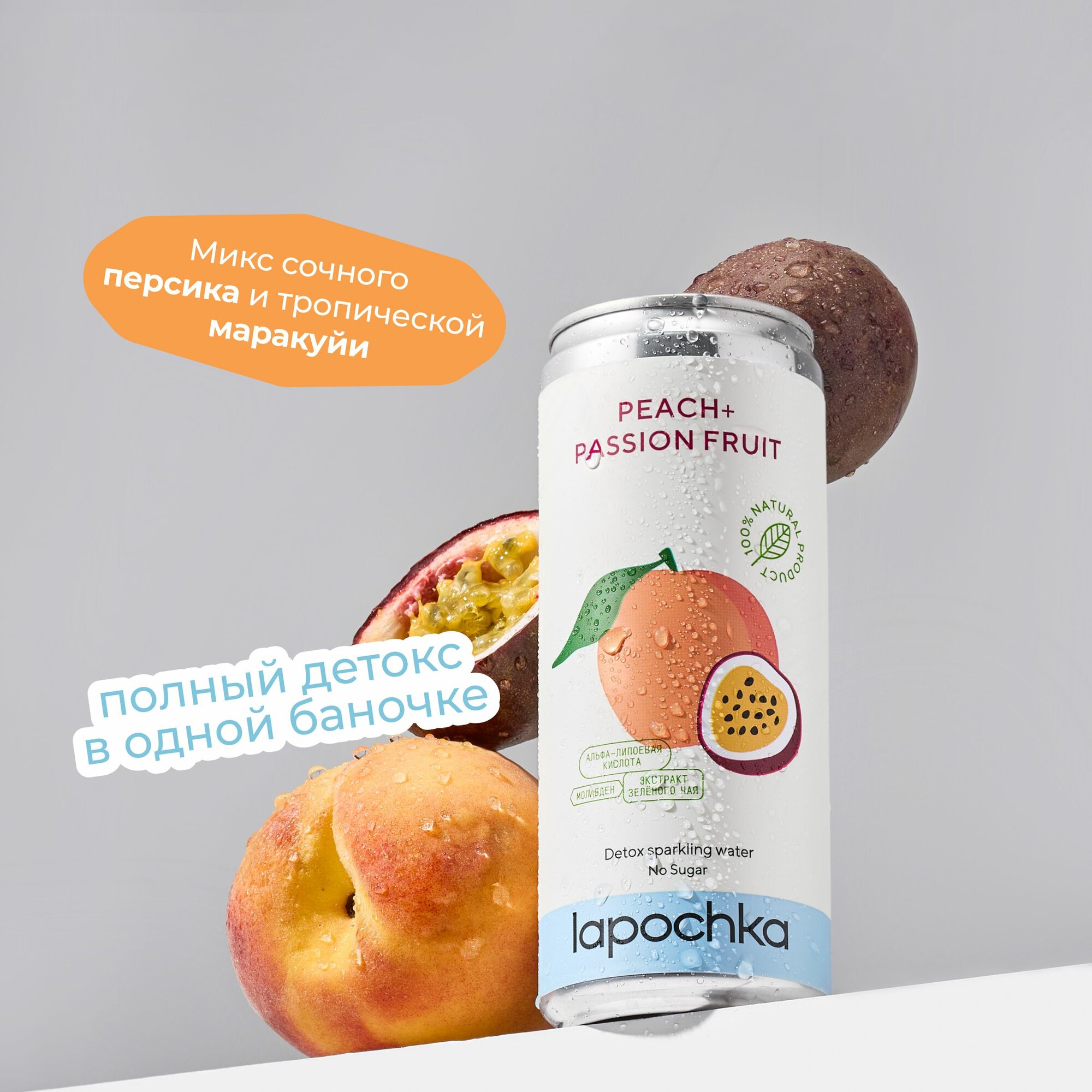 Напиток среднегазированный без сахара LAPOCHKA DETOX Персик + Маракуйя 20 х 0,33 л информация:
