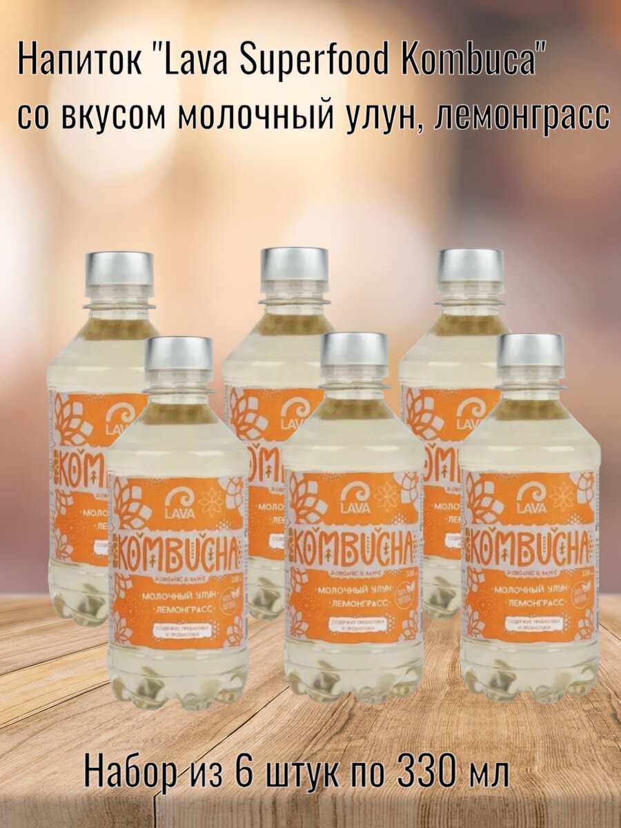 Напиток "Lava Superfood Kombucha" молочный улун, лемонграсс, 330 мл (Хозсфера) 6 шт. в наборе информация: