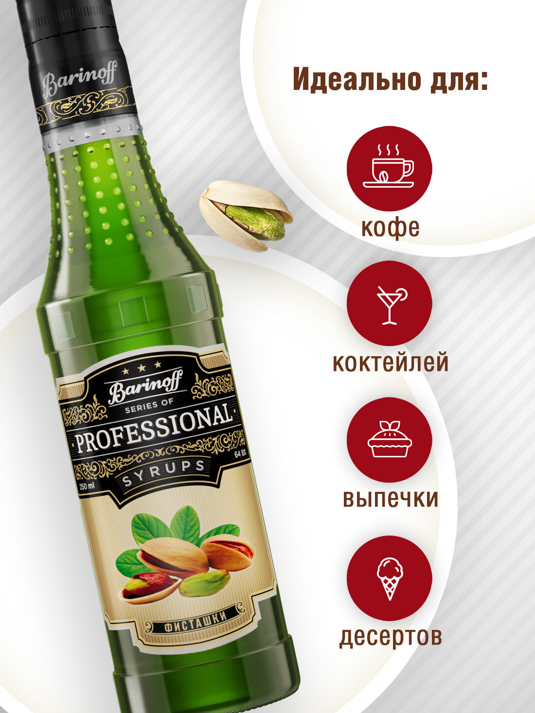 Сироп Barinoff Фисташки (для кофе, коктейлей, десертов, лимонада и мороженого), 250 мл/0,25л информация: