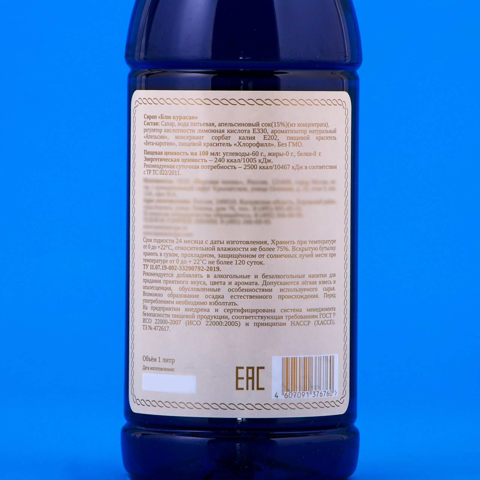Сироп Блю Курасао Мамин рецепт со вкусом Блю курасао 1,0 ПЭТ информация: