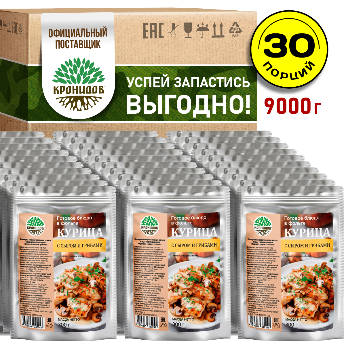 10 цен на Готовое блюдо в реторт-пакете "Курица с сыром и грибами" Кронидов. Сухой паек для охоты, рыбалки, в поход. Набор 30 шт. по 300 г