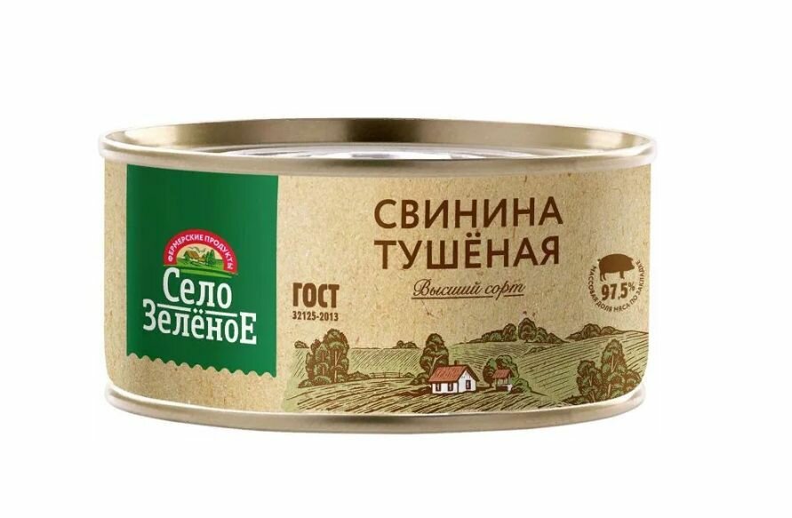Село зеленое Свинина Тушеная Высший сорт, ГОСТ, 6 шт по 325 г информация: