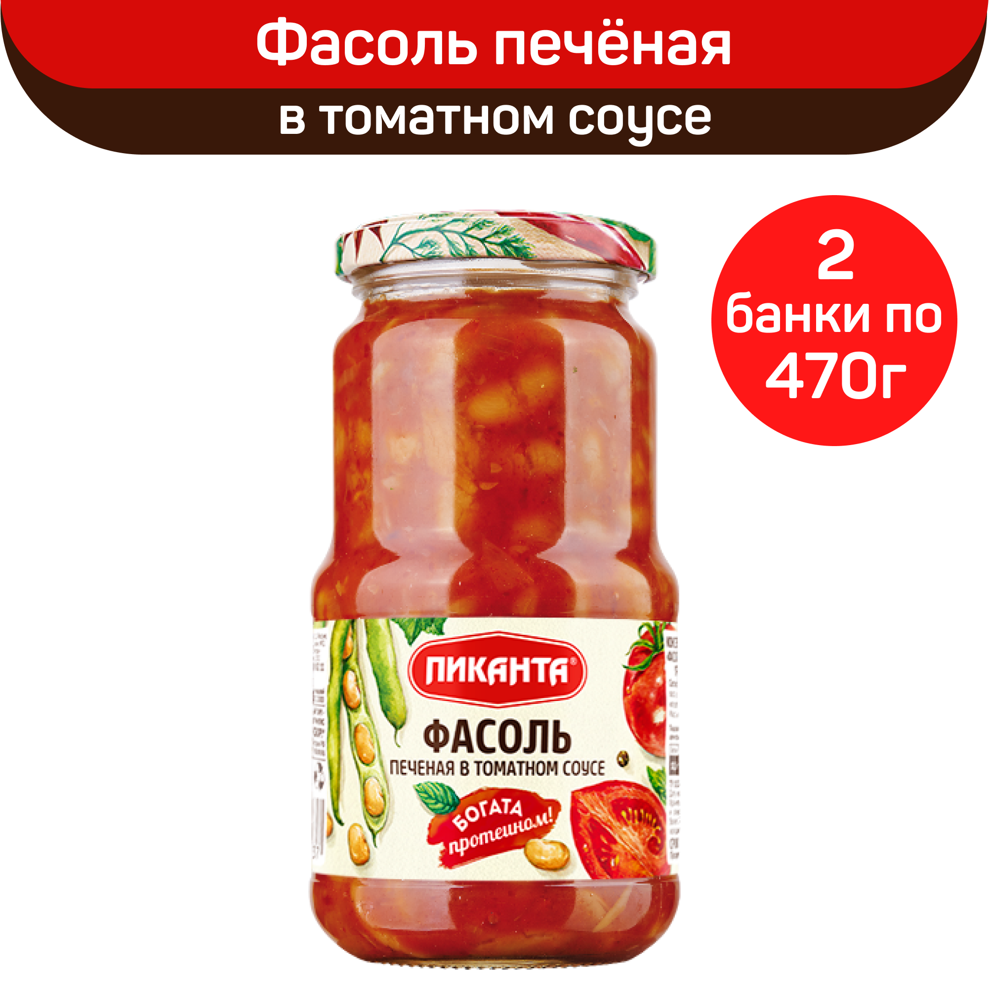 Фасоль Пиканта печеная в томатном соусе, 2 шт по 470 г информация: