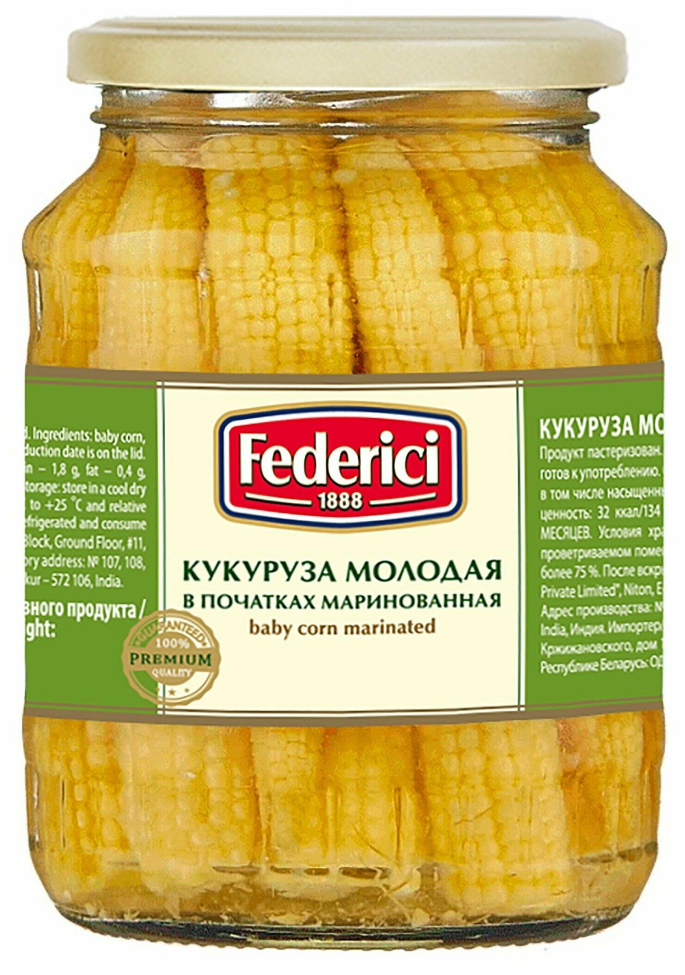 Кукуруза молодая в початках FEDERICI Baby corn marinated маринованная, 370 мл информация: