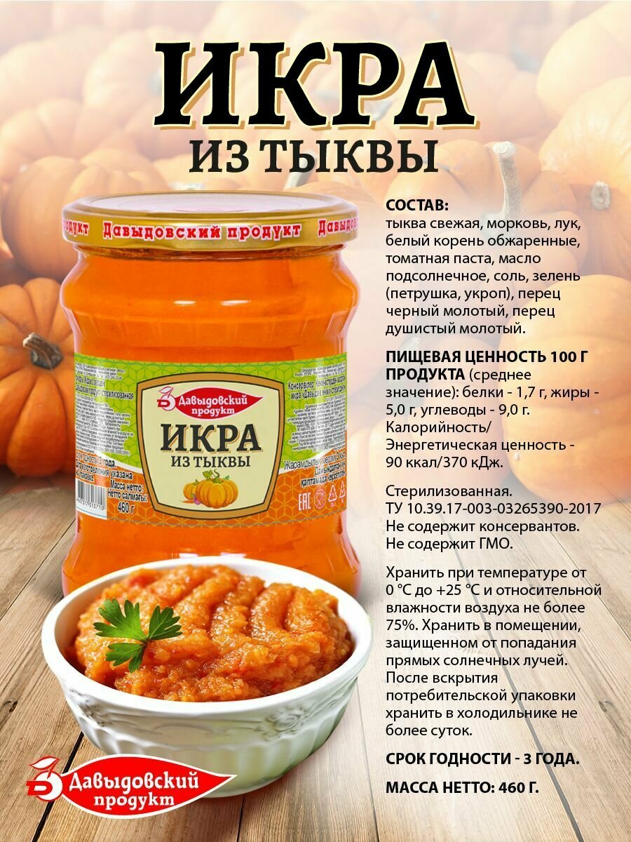 Икра из тыквы ТУ 460 гр. - 4 шт. информация: