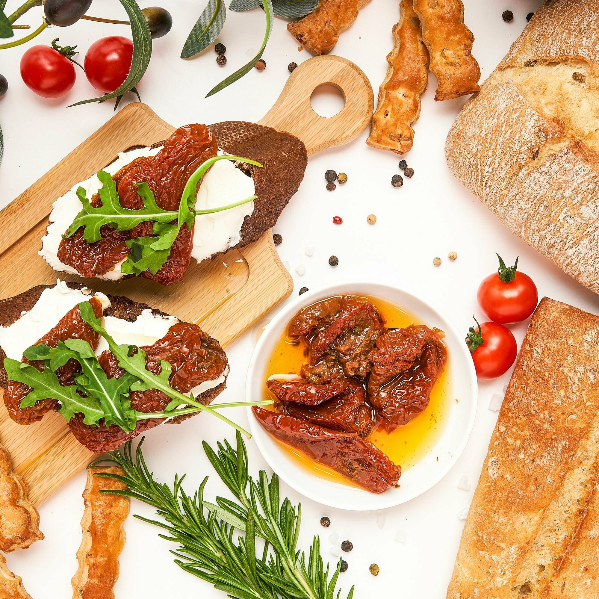| Состав | вяленые томаты (55%), подсолнечное масло, уксус, соль поваренная пищевая, сахар, оливковое масло Extra Virgin, петрушка, чеснок, базилик, антиоксидант - Е300, регулятор кислотности - Е330 |