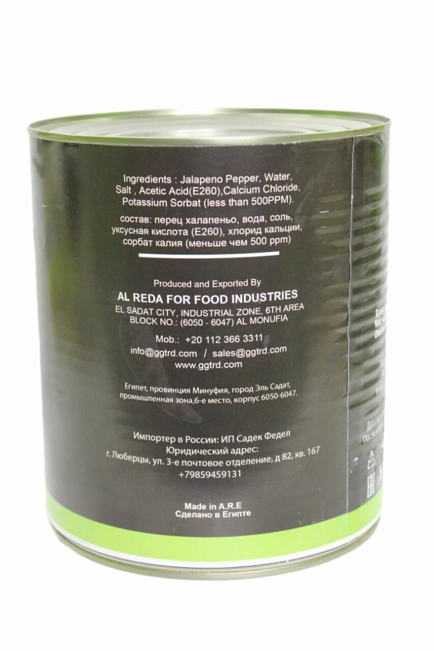 Перец Халапеньо маринованный резанный, ALFAKHER информация:
