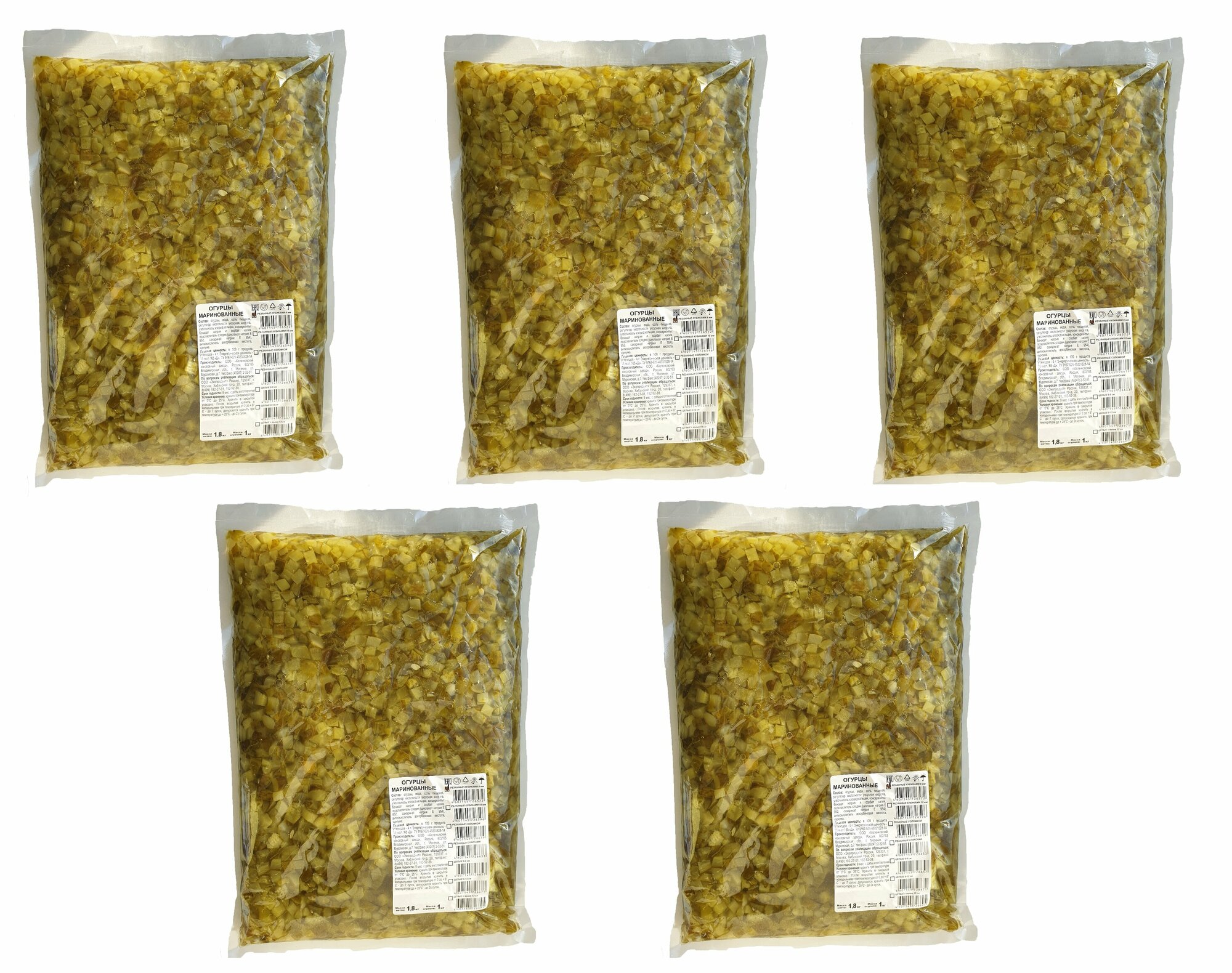 Огурцы маринованные резаные кубиками в пакете 5 пакетов по 1800гр информация: