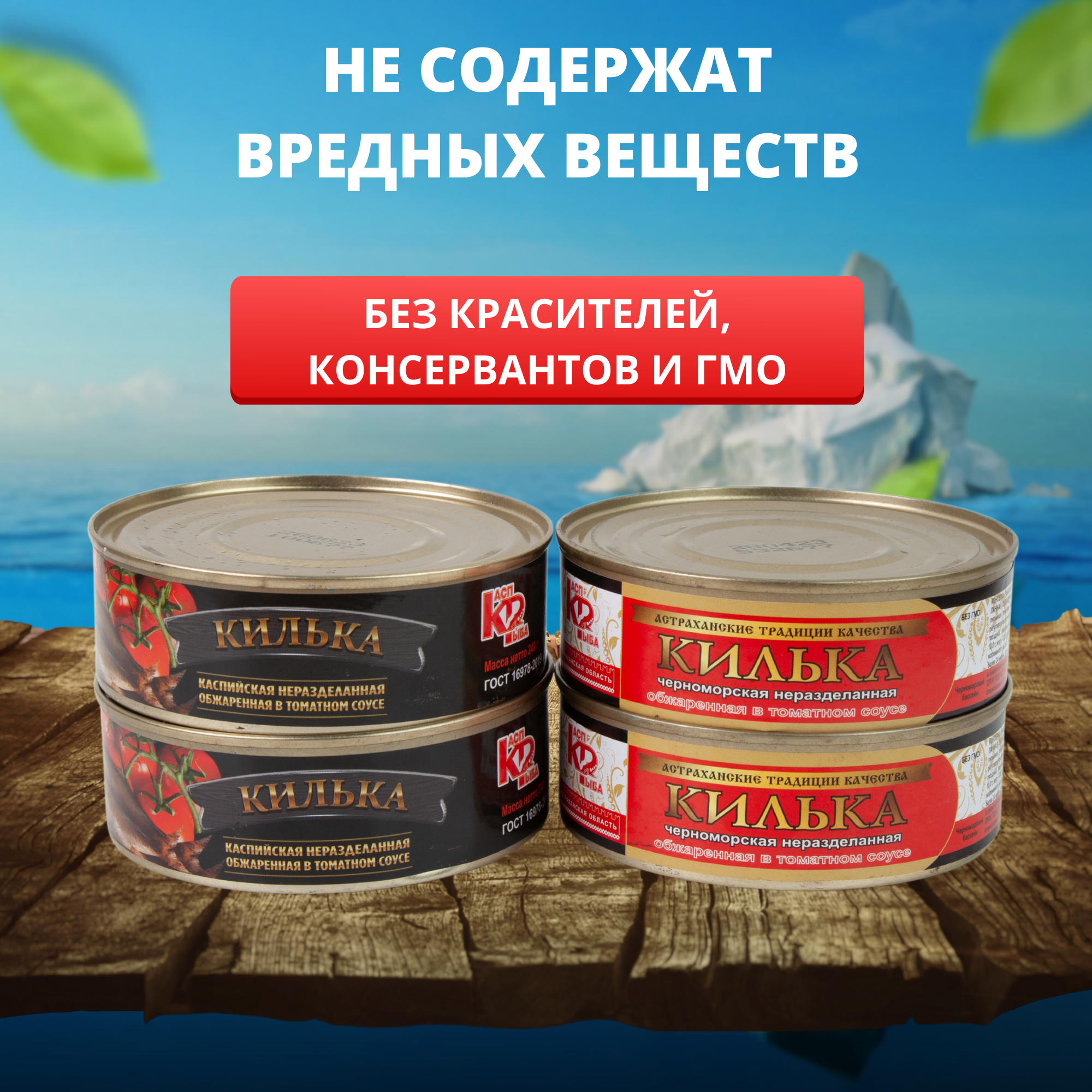 Рыбные консервы, килька в томате и килька черноморская 4 банки по 240 грамм информация: