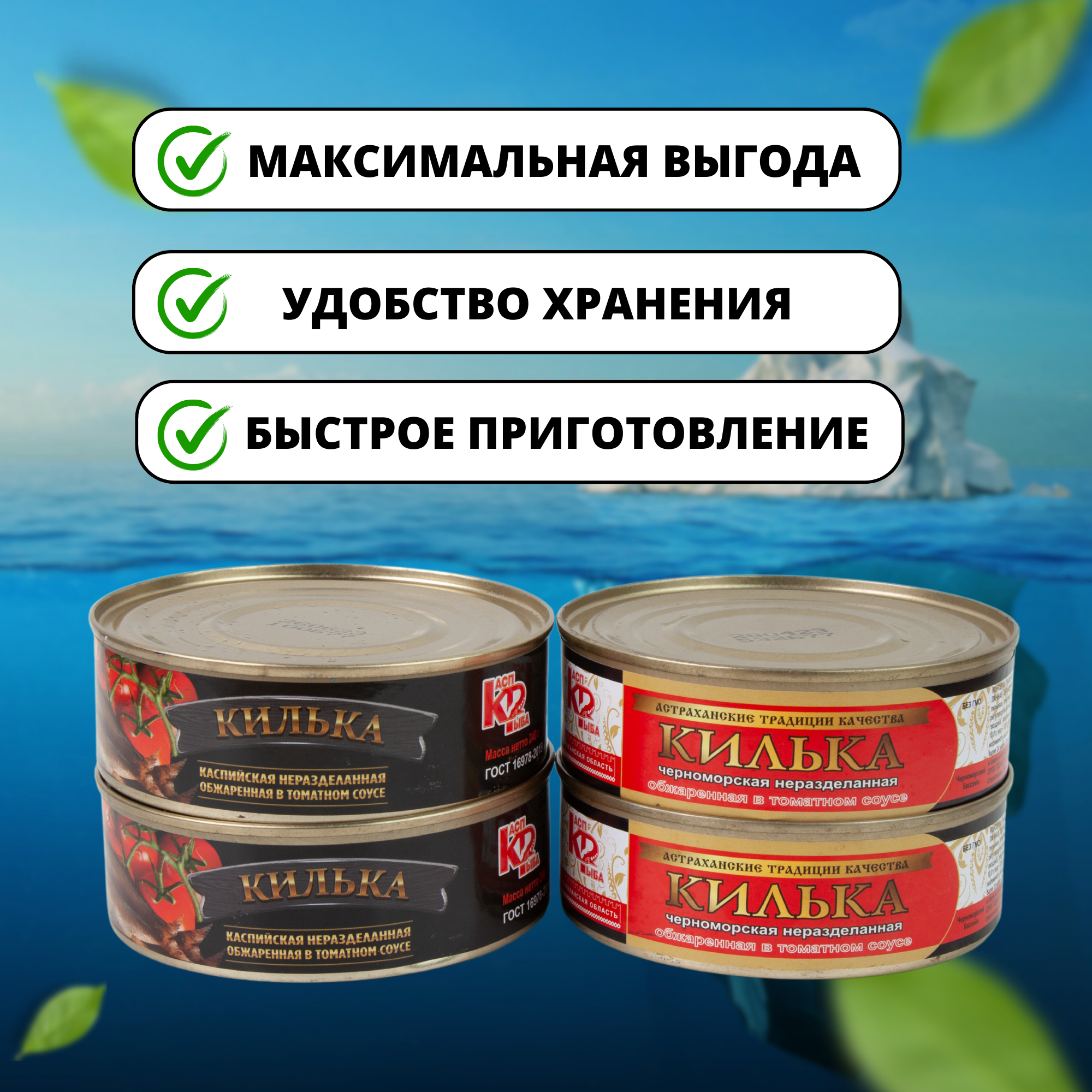 10 цен на Рыбные консервы, килька в томате и килька черноморская 4 банки по 240 грамм