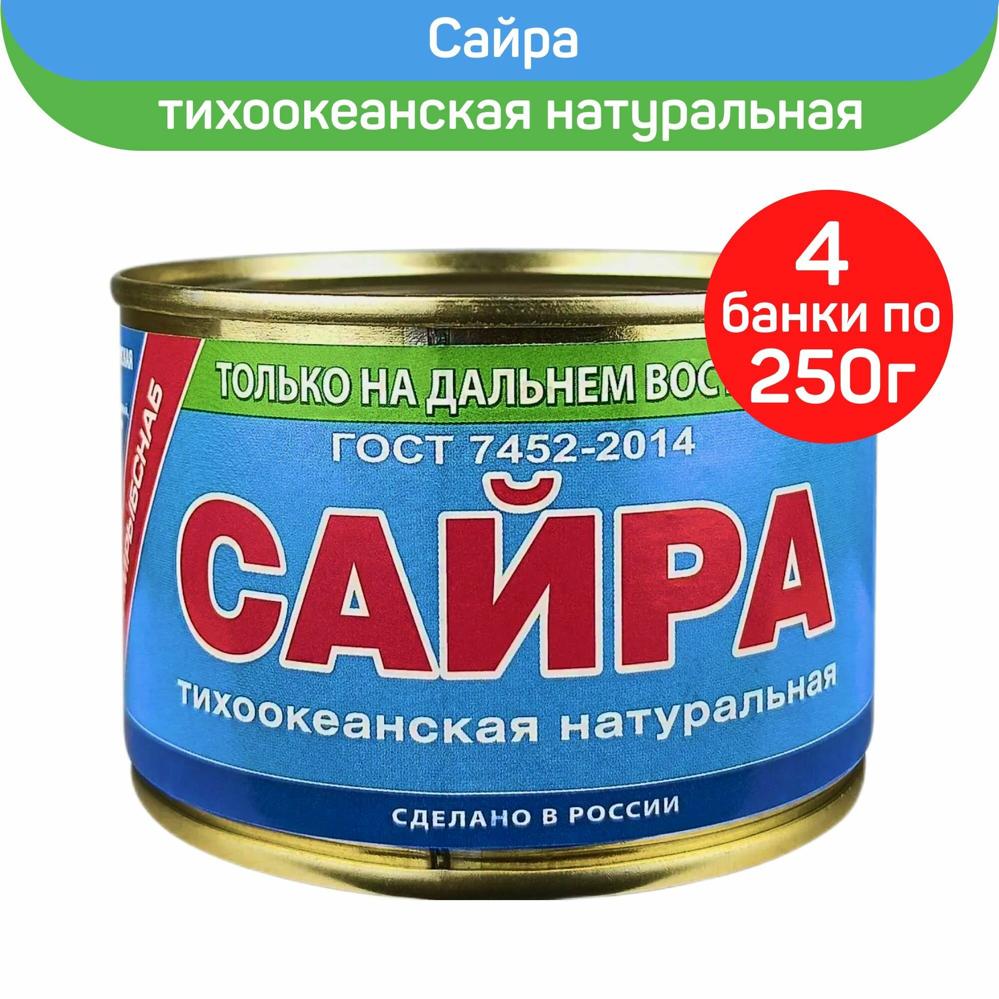 Консервы рыбные "Примрыбснаб" - Сайра натуральная ГОСТ, 250 г - 4 шт