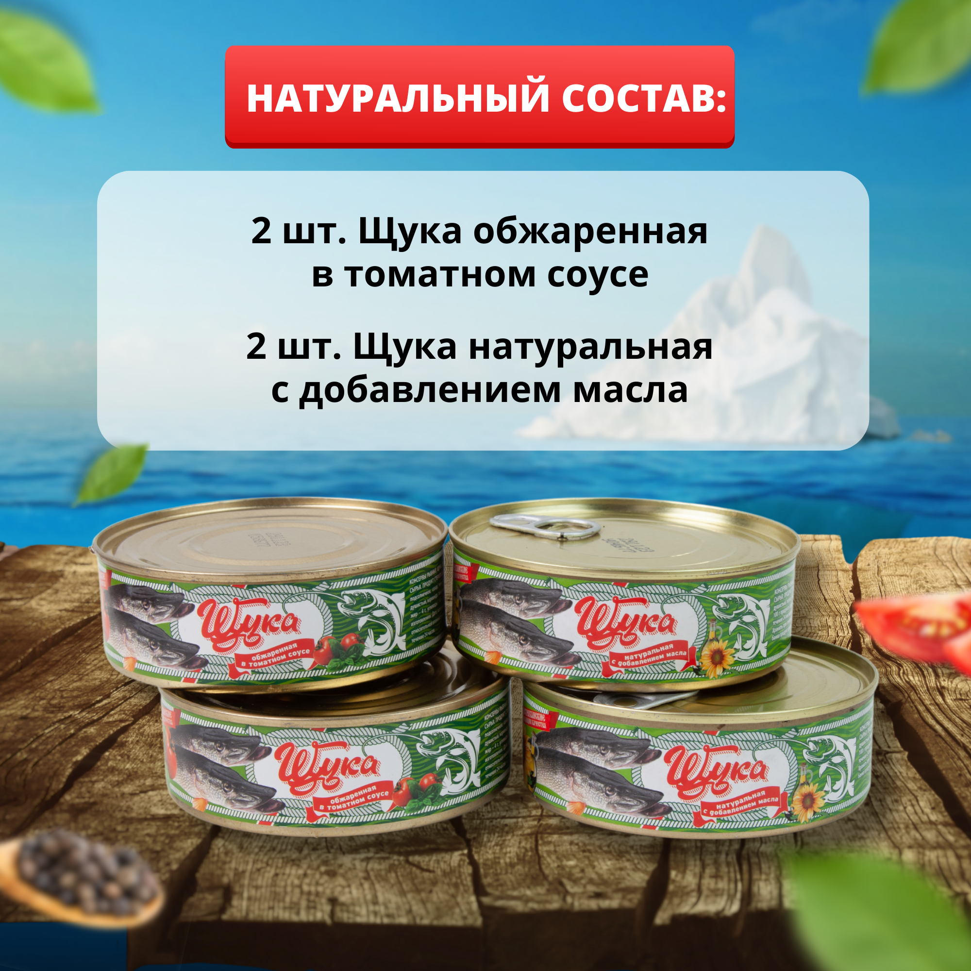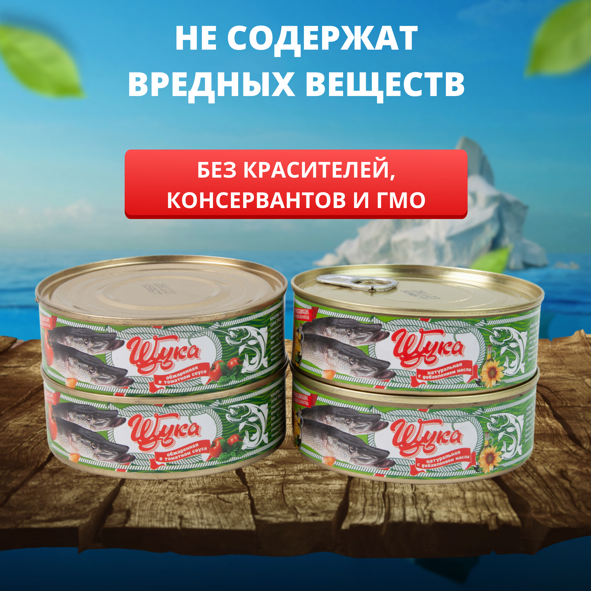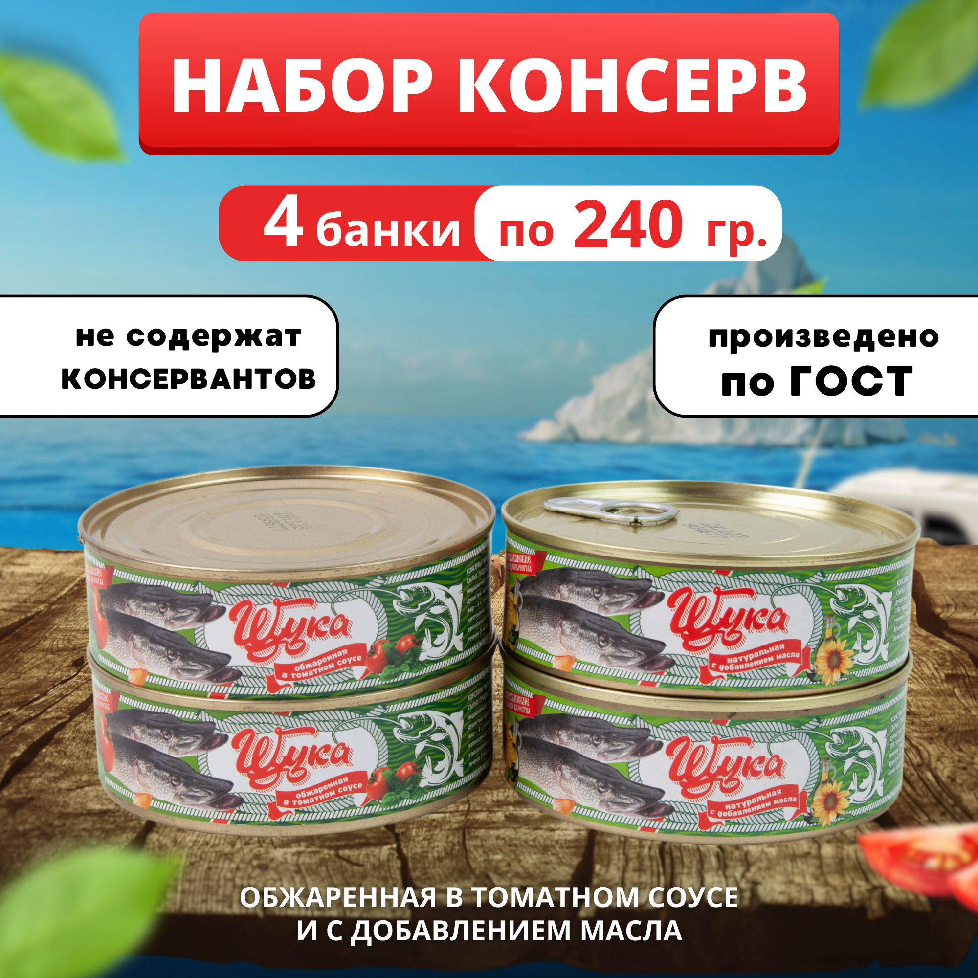 Рыбные консервы, щука в масле и в томате 4 банки по 240 грамм информация: