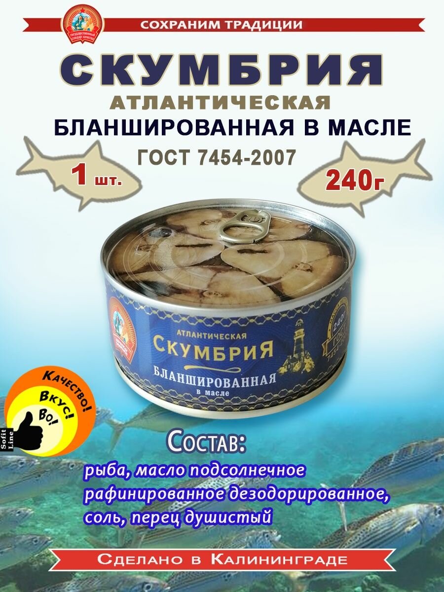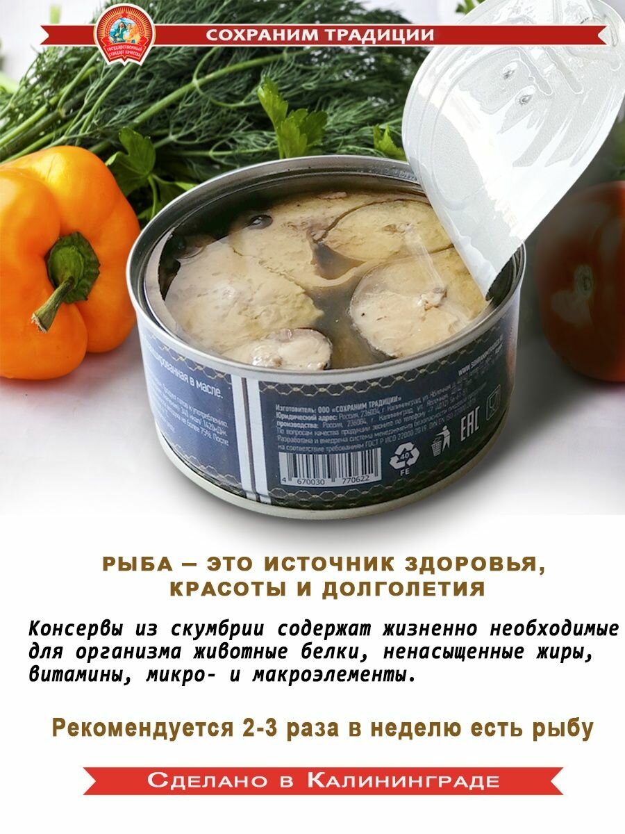 Скумбрия бланшированная в масле Сохраним Традиции 240гр. 1 шт. информация: