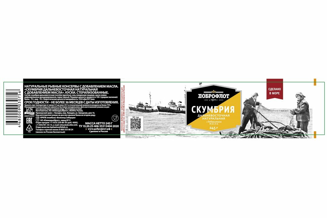 Скумбрия с добавлением масла, дальневосточная, Доброфлот, 1 шт. по 245 г информация: