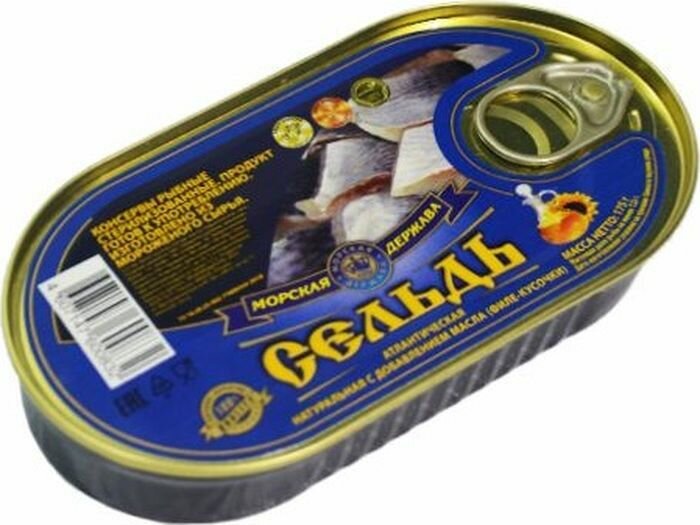 Сельдь атлантическая филе в масле натуральная с ключом "Морская Держава" ГОСТ 175г 12шт информация: