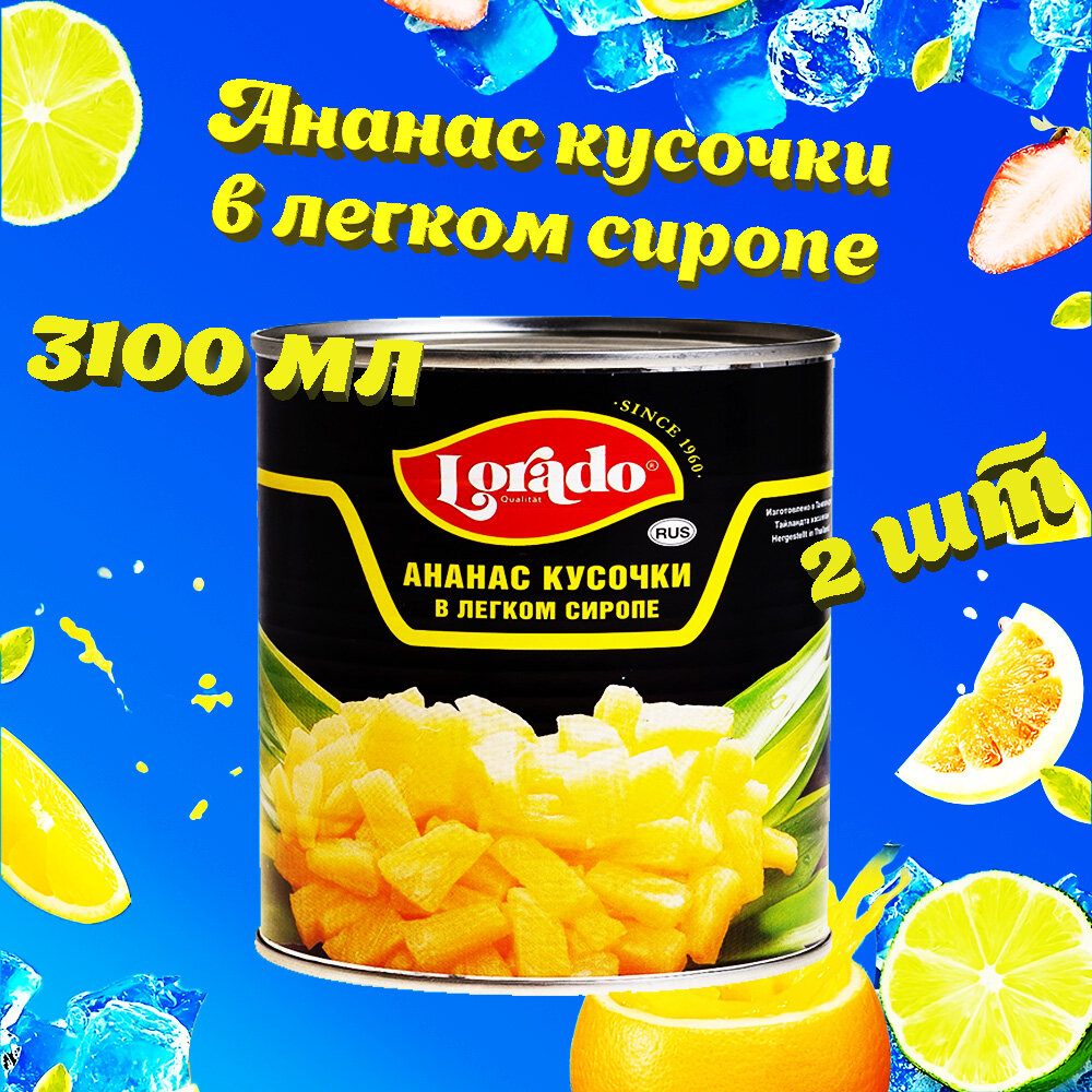Ананас кусочки, в легком сиропе, Lorado, 2 шт. по 3100 мл информация: