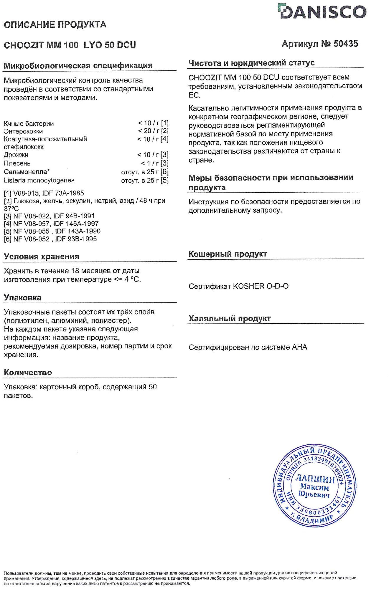 CHOOZIT MM 101 25 DCU мезофильные культуры (Danisco) информация: