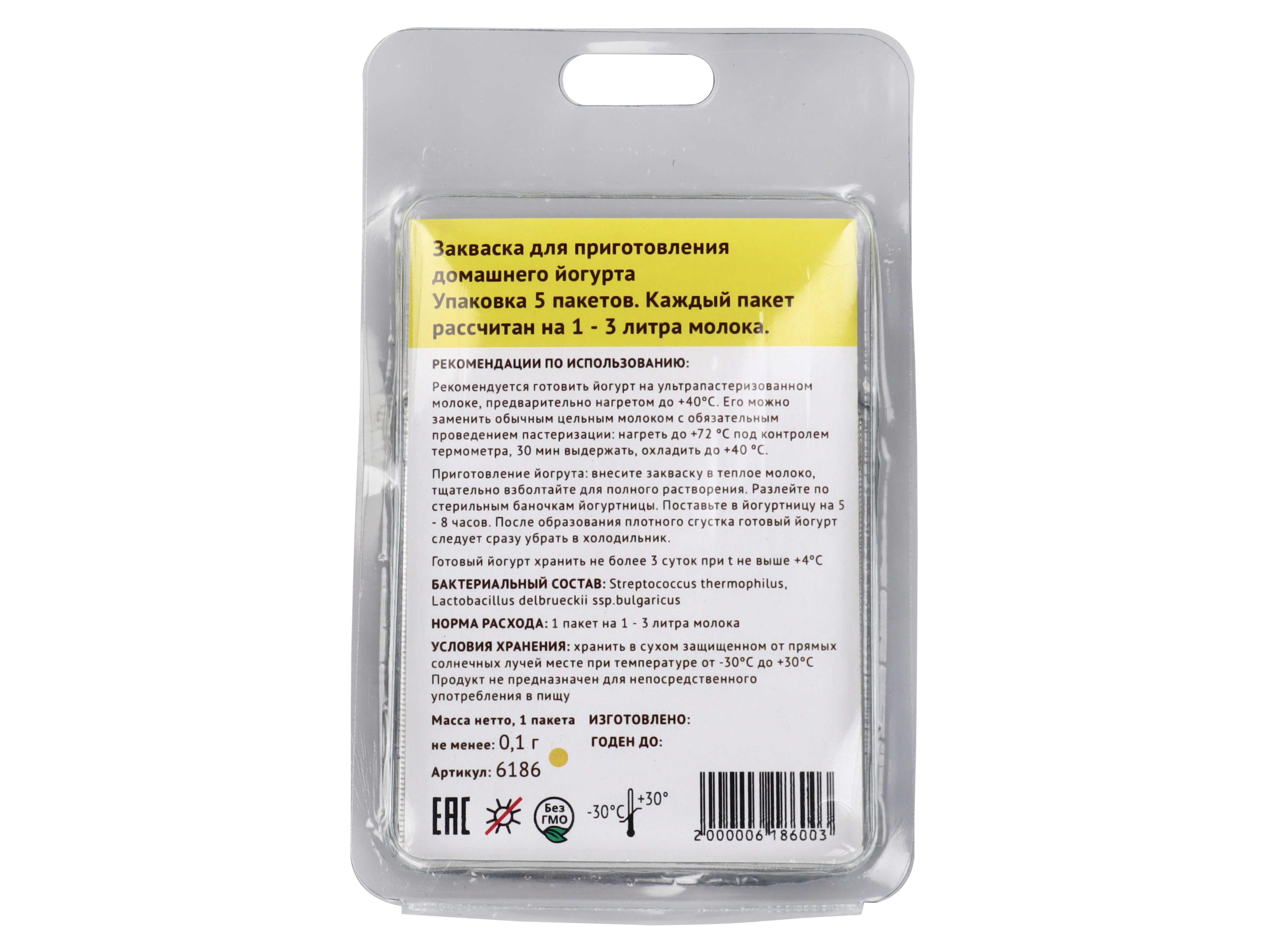 Закваска для йогурта Здоровеево, 5 пакетов в блистере информация:
