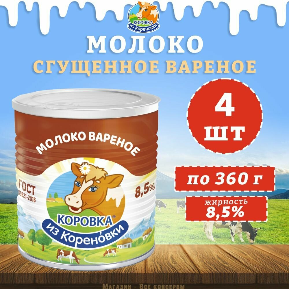 10 цен на Молоко сгущенное вареное с сахаром 8,5%, ГОСТ, КизК, 4 шт. по 360 г
