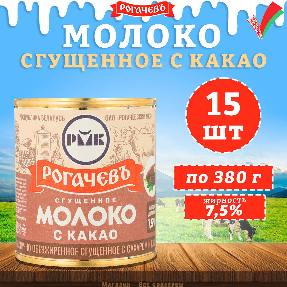 Молоко сгущенное с какао 7,5%, Рогачев, 15 шт. по 380 г информация: