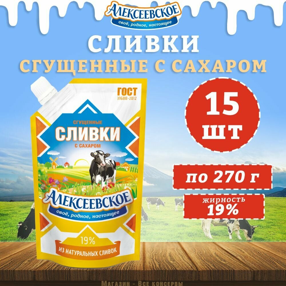Сливки сгущенные с сахаром 19%, дойпак, Алексеевское, 15 шт. по 270 г информация:
