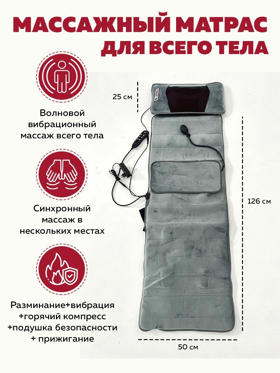 10 цен на Массажный матрас для всего тела 3в1 FS-F3. Коврик электрический с пультом.