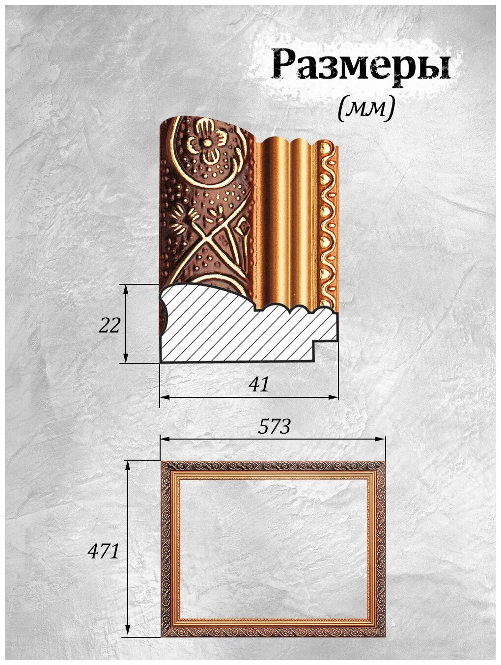 Багетная рама Art of Dream "Isabelle" для картин 40х50 см / коричневая с золотистым орнаментом / Деревянный багет информация: