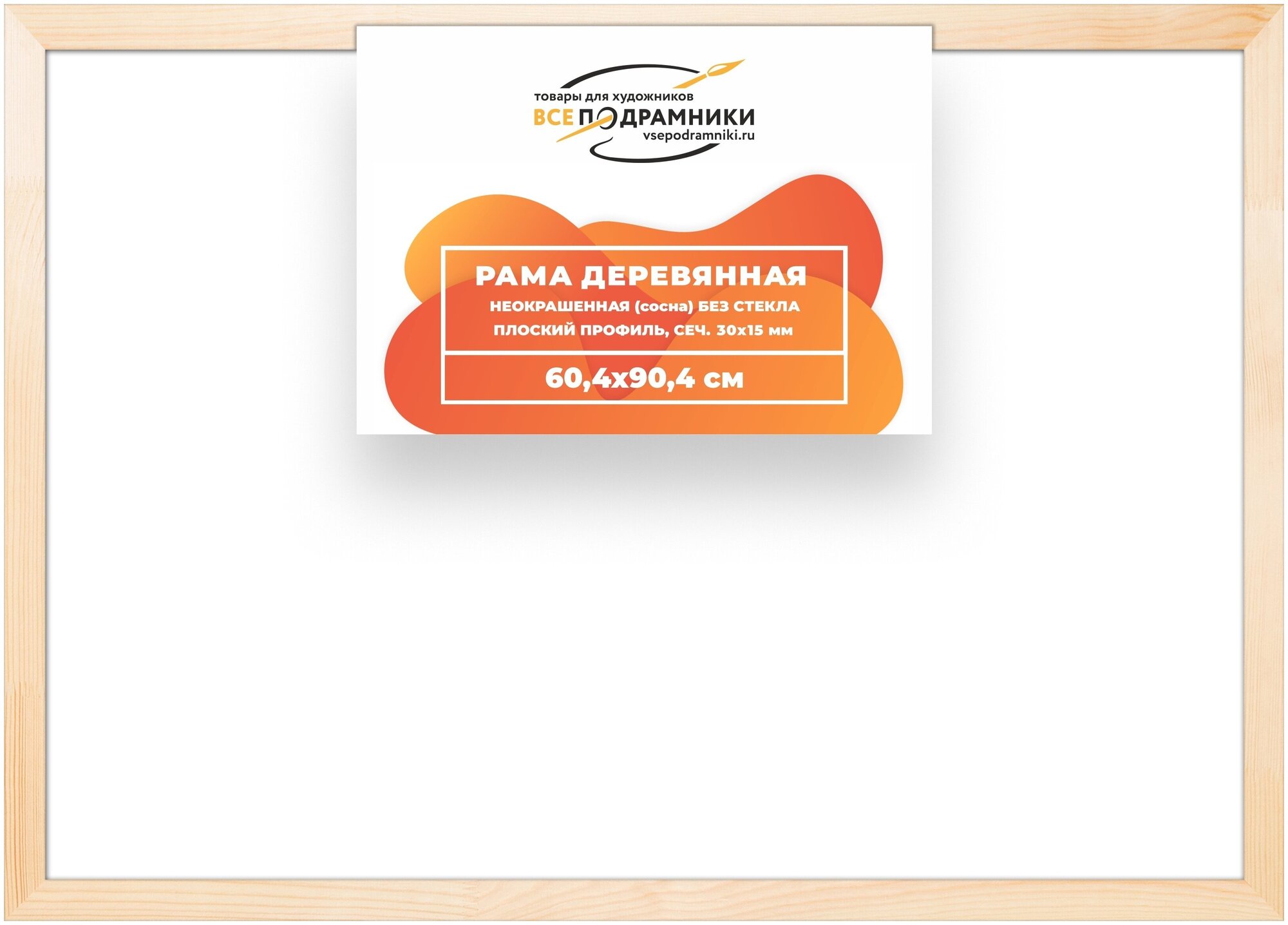 Рама багетная 60x90 для картин на холсте, деревянная, без стекла и задника, ВсеПодрамники информация: