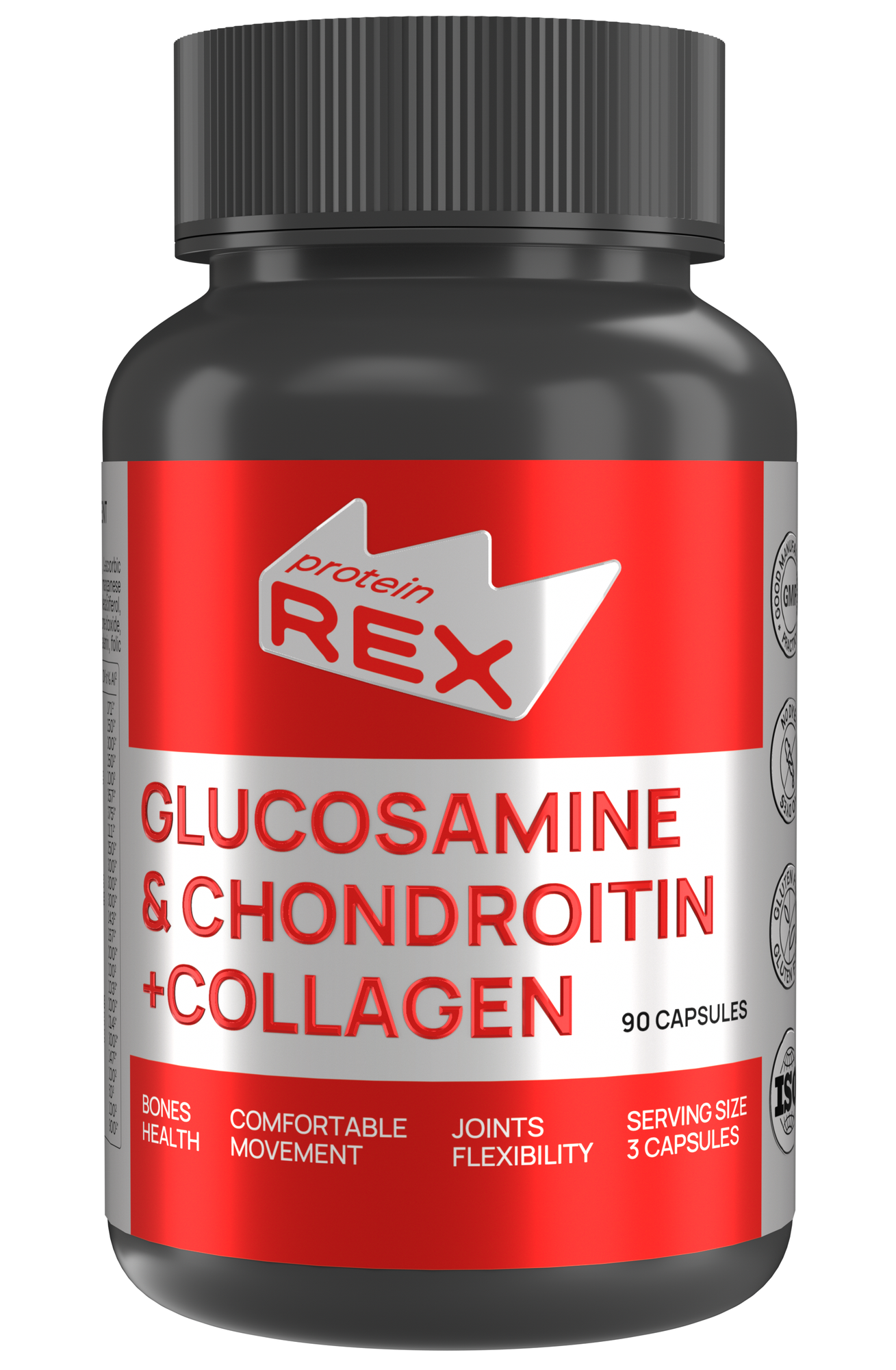 Глюкозамин Хондроитин + Коллаген ProteinRex 90 капсул, БАД для кожи и связок, хондропротектор спорт питание информация: