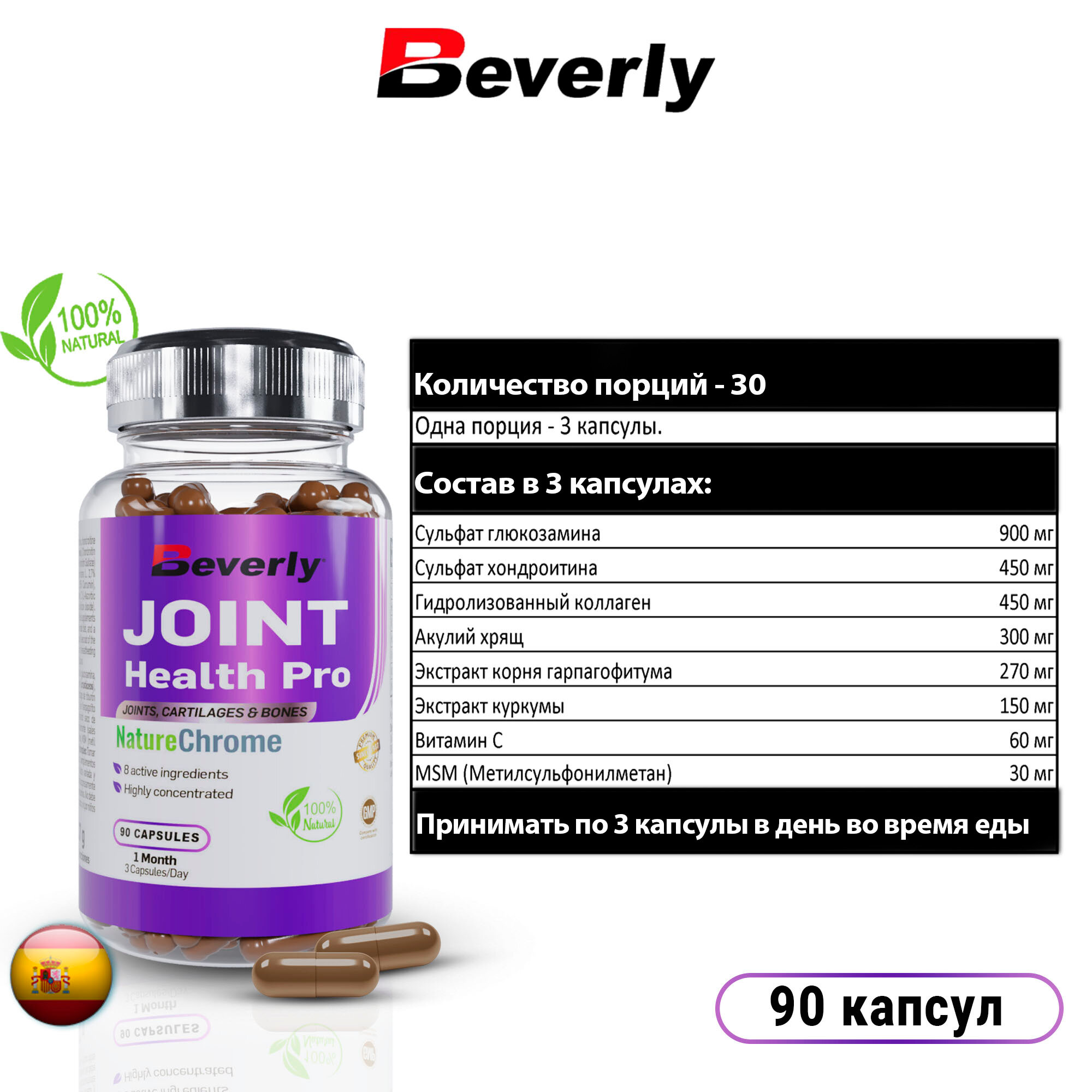 Beverly Nutrition/JOINT HEALTH PRO/Препарат для суставов, связок и хрящей, 90 капсул информация: