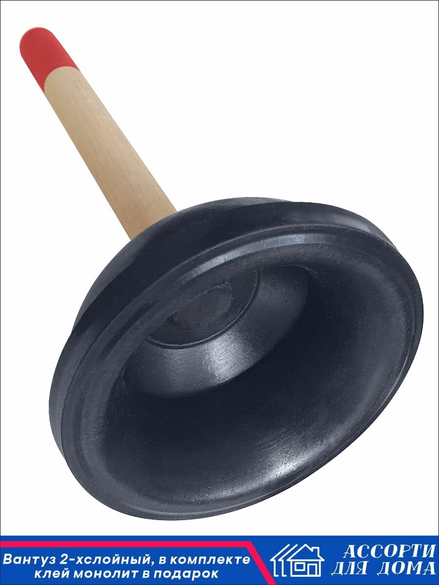 10 цен на Вантуз 2-х слойный, усиленный с деревянной ручкой. Вантуз для ванны, раковины, умывальников, в комплекте с клеем