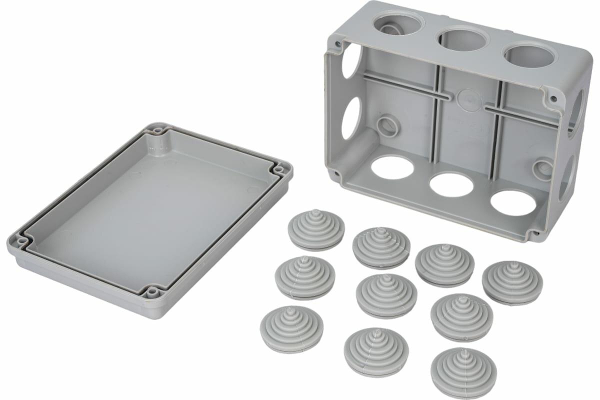 Коробка разветвительная о/у серая с 10 кабельными вводами с крыш. на винтах 150х110х70 IP55 ЭРА информация: