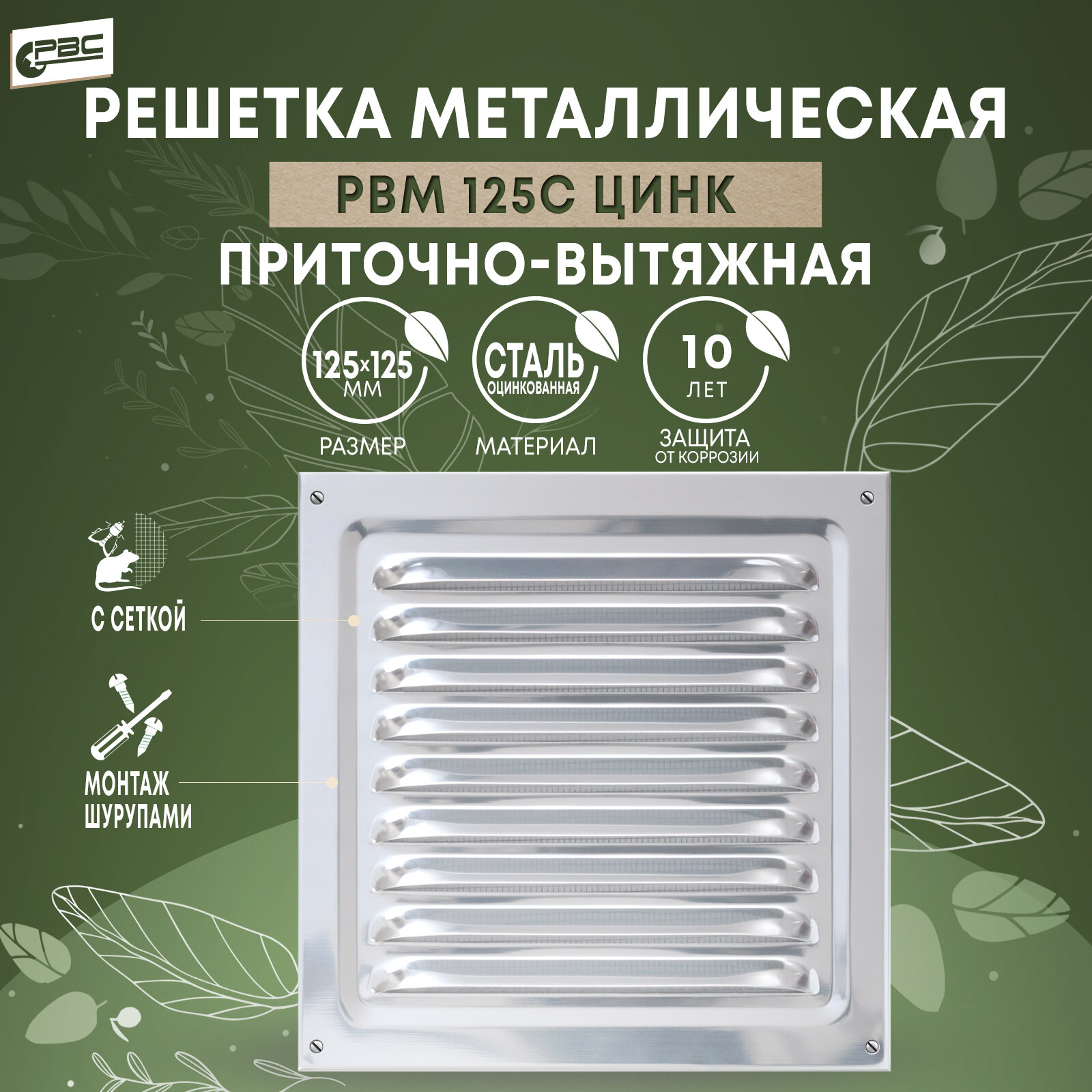 Решетка вентиляционная металлическая накладная с москитной сеткой 12,5х12,5 см, цвет цинк информация: