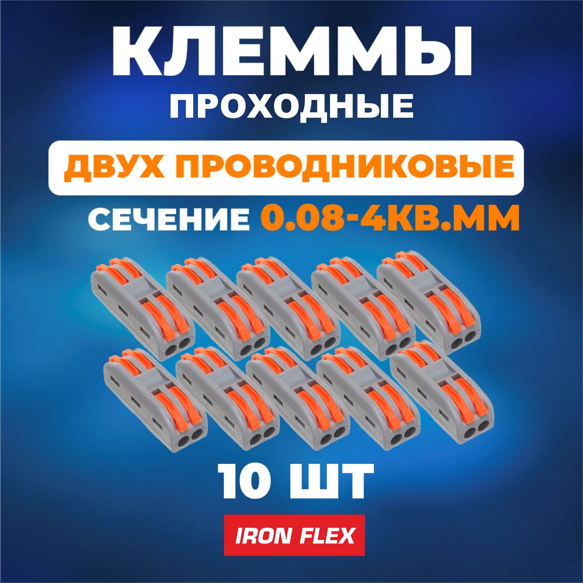 Клемма соединительная проходная Iron Flex для 2-х проводников сечением 0,08-4 мм² ,10 шт. информация: