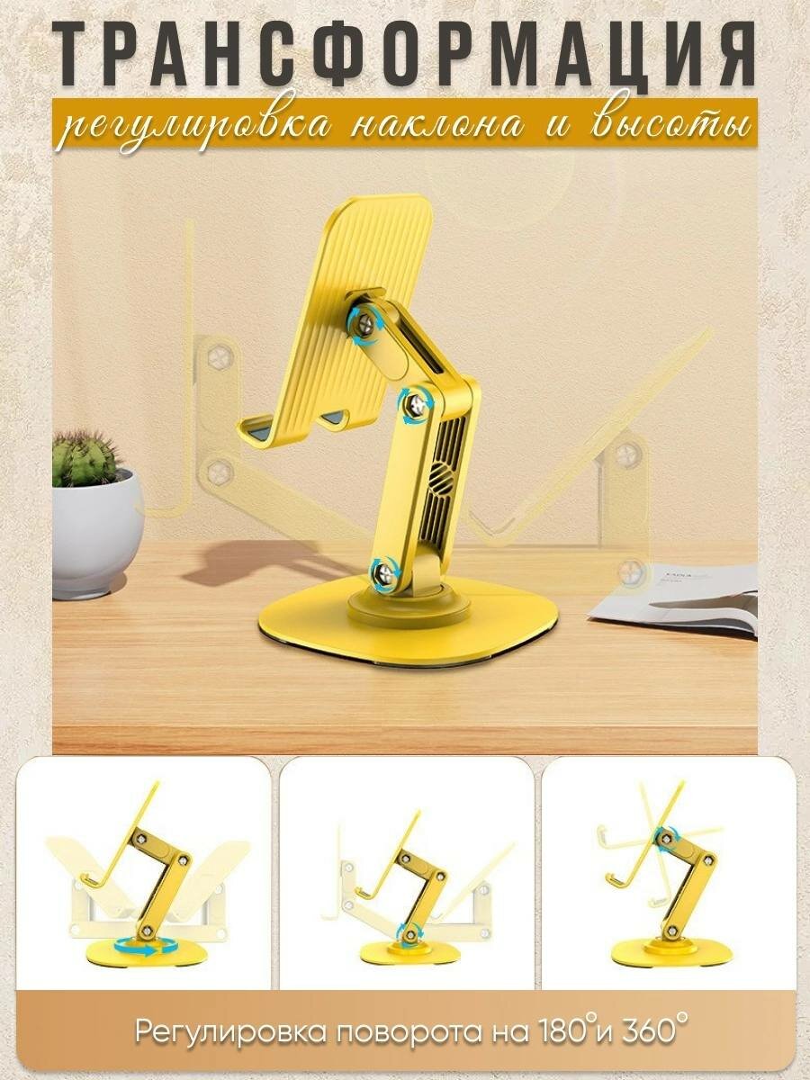 Настольная подставка YASA для телефонов и планшетов с регулируемым углом наклона на 360 ° YD6 HD6 Желтый информация: