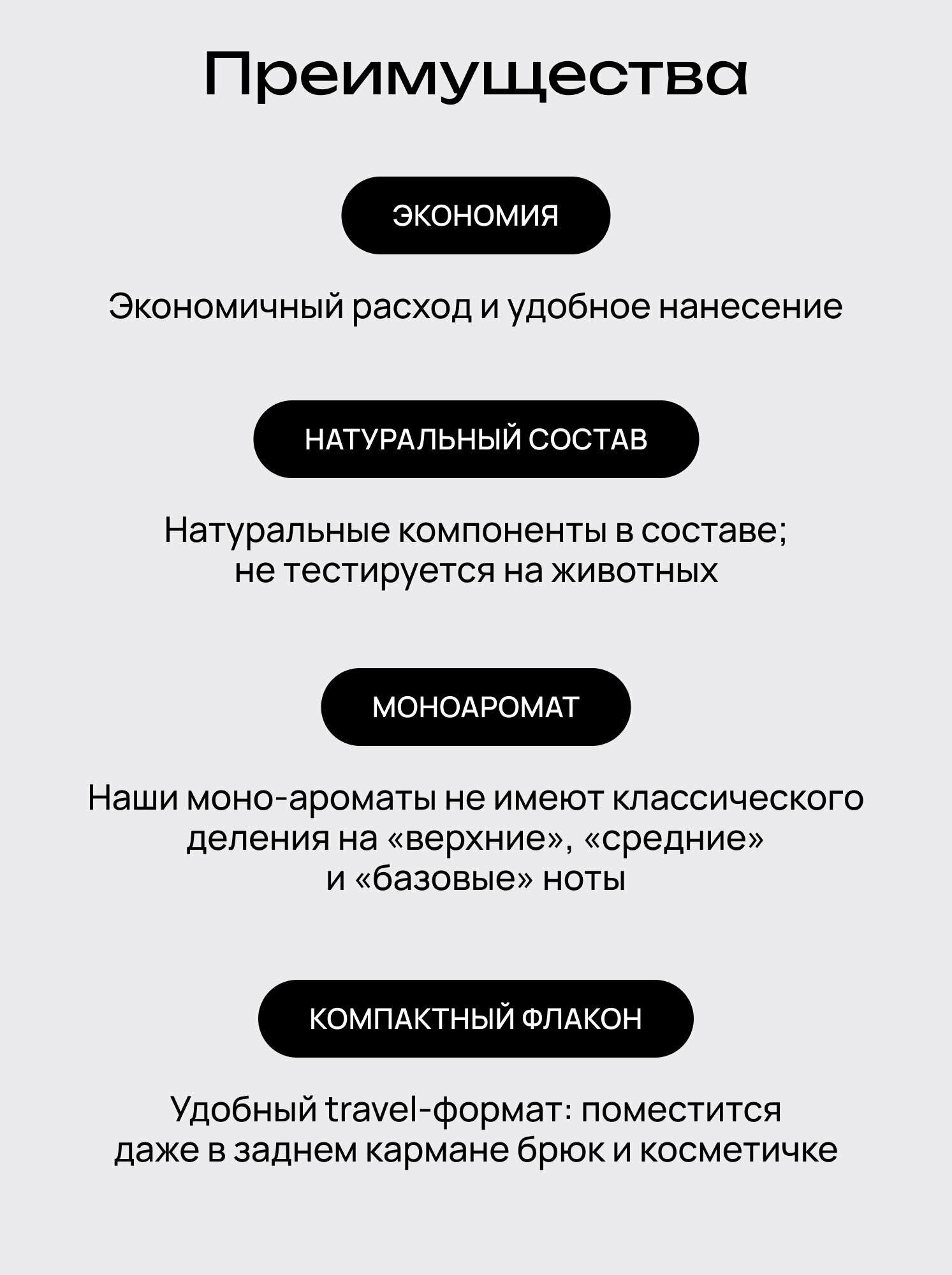 | Состав | Парфюмерная композиция, алкогольная основа, каприлик, деионизированная вода |