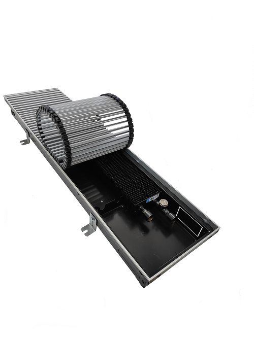 Внутрипольный конвектор Techno Vent KVZV 250-85-1200.00.000/24V/С с принудительной конвекцией, окантовка цвет серебро, без решетки